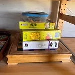 Här finns mathörna, där gästerna kan använda te-/kaffebryggare. Det finns också spishäll och köksredskap i köket.